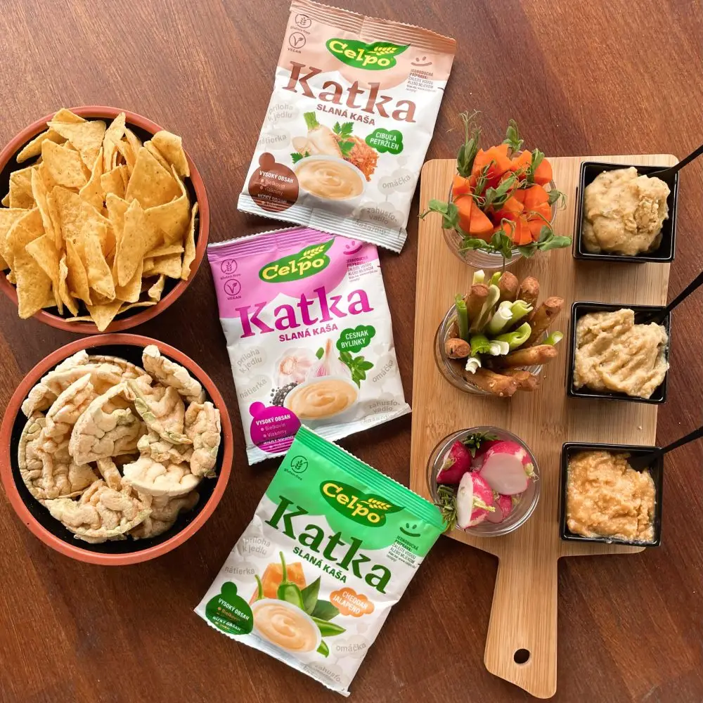 Stačí otvoriť, zaliať studenou alebo teplou tekutinou – mlieko, voda, rastlinný nápoj a nabrať do misiek. Nakrájať obľúbenú zeleninu a bylinky a servírovať spolu s Celpo chlebíčkami, hrubými tyčinkami alebo krekrami. Môžete si vybrať príchuť Cibuľa a petržlen alebo Cesnak a bylinky alebo Cheddar a jalapeno. My odporúčame všetky tri varianty, keďže sa chuťovo výborne dopĺňajú a potešia maškrtné jazýčky vašej návštevy.